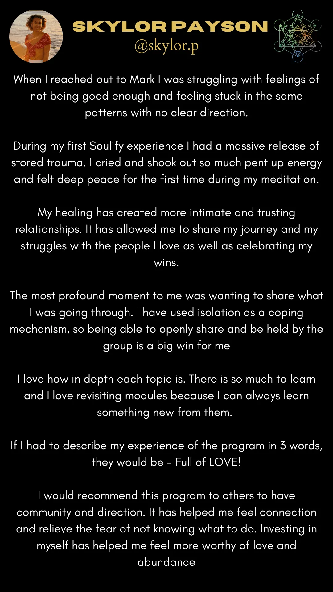 He has created a purpose driven trauma healing system that liberates individuals and groups alike as it transfers and elevates traditional schooling and corporate models.
