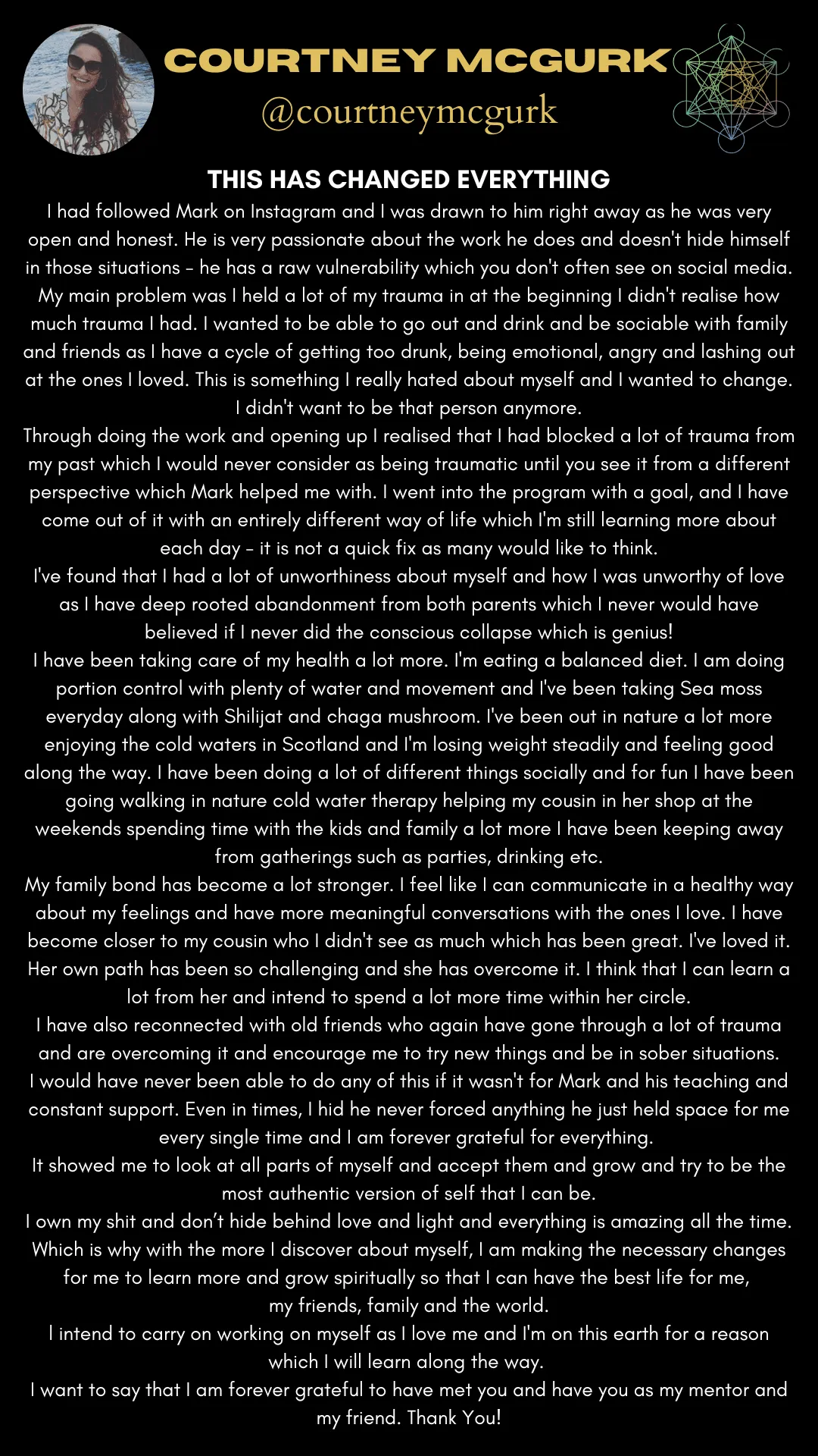 From learning from some of the greatest minds in our lifetime (see below) and his own experience of self healing from cancer, lymes dis-ease, losing a child, divorce, PTSD and suicide contemplation to name but a few....